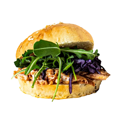 4. SMOKED CHICKEN BURGER - €14 Smoked chicken topped with melted cheese, fresh tomato slices, gem lettuce, tomato & sweet corn salsa. Served on toasted homemade bread with our house dressing. (Gluten, Dairy, Egg)